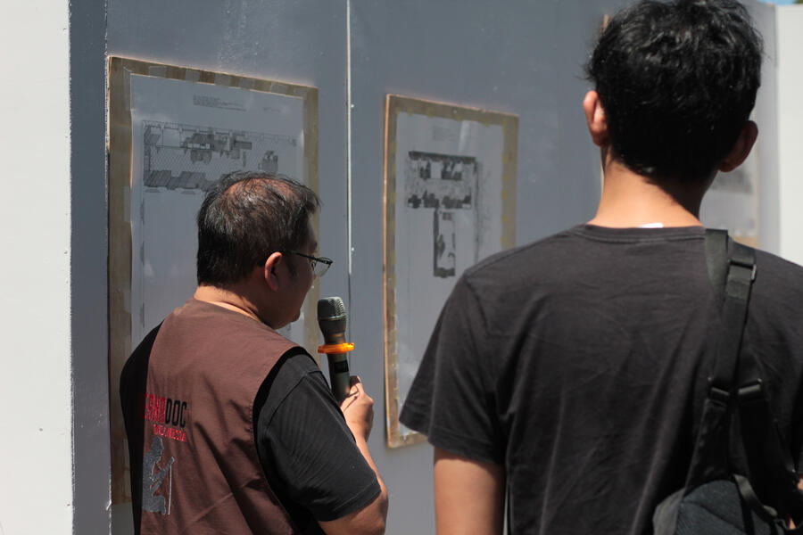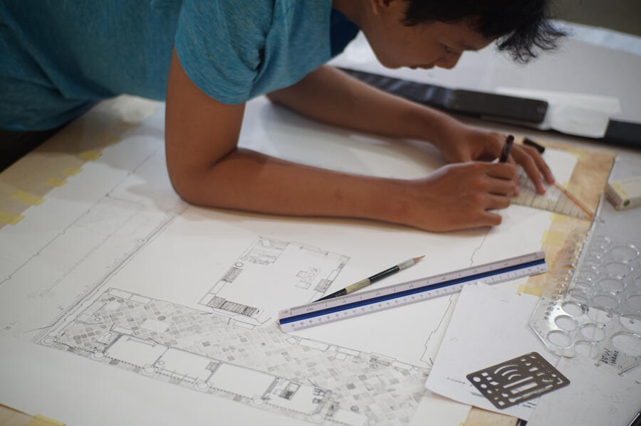 Tahap berikutnya di tanggal 20 July saat hari sudah sore, setelah selesai dengan pengukuran dan gambar menggunakan pensil yang di kerjakan secara on the spot, kami pindah ke studio temporer yang telah disiapkan untuk melanjutkan gambar dan men- touch up gambar pensil tadi menggunakan tinta.