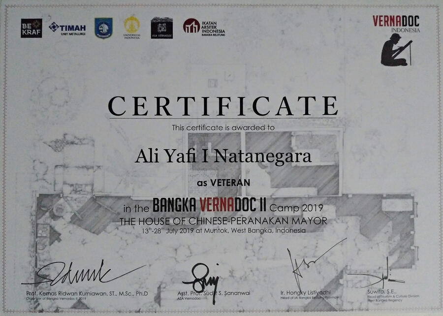 Dan pada kesempatan ini Saya dengan teman-teman dari beberapa mahasiswa dari berbagai universitas di Jakarta, Indonesia berasama-sama dengan Profesional VernaDoc dari Thailand mengikuti Bangka VernaDoc II 2019, untuk mendokumentasikan bangunan Rumah Mayor Peranakan Cina di Muntok, Bangka.